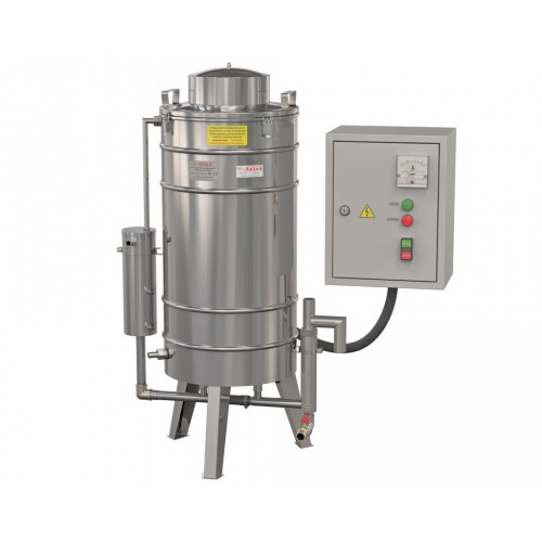 Дистиллятор оснащён датчиками контроля уровня воды, разборным конденсатором и другими устройствами, повышающими качество дистиллята.