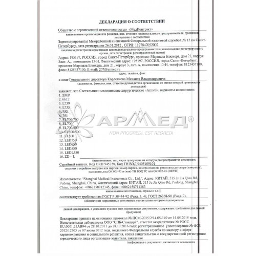 Светильник диагностический хирургический «Armed»: ZMD предназначен для освещения рабочего поля при проведении хирургических операций,
