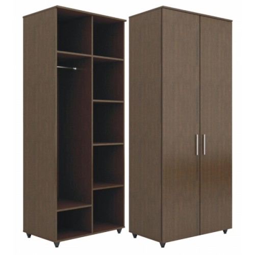 Шкаф гардеробный используется в общественных помещениях различного назначения, для оснащения рабочих мест. Изделие предназначено для хранения одежды, головных уборов и обуви, сочетает в себе рациональность конструкции и надежность эксплуатации. Шкаф установлен на регулируемые опоры высотой 50 мм. Шкаф разделен на две секции: левая оборудована штангой и полками, правая полками.