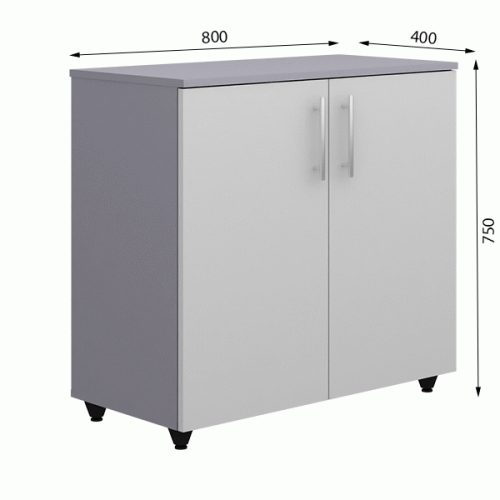 Шкаф низкий с дверцами используется в общественных помещениях различного назначения, для оснащения рабочих мест. Изделие предназначено для хранения канцелярских принадлежностей, документов, сочетает в себе рациональность конструкции и надежность эксплуатации. Шкаф установлен на регулируемые опоры высотой 50 мм. Расстояние между полками: 350 мм.