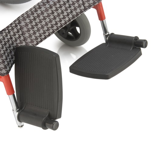 Кресло-коляска оснащена съемными, поворотными подножками, регулируемыми по высоте с мягким упором для голени.